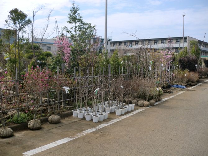 シダレ桃、カイドウ、よしの、しだれ桜、梅、ドウダン、フイリアセビ、リュウセン、春一番、マンサク、ヒノデツツジ、ゴールドライダー、ライチタブルー、モーングロウ、スカイペンシル、エメラルド、カネコゲンカイ、ゲンペイ、バイカウツギ、日月生、十月桜、セイシカ(赤)、シャクナゲ赤星、ミツバツツジ、彩の色樺、アーモンド、紫モクレン、花水木赤、コハウチワ、白樺ジャコモンテ、サンショメス、オス、ドウダン玉、大実ブルーベリー、コロラータ、ピンクレモネード、ヨアケマエ、ヤマボウシ、ビバーナルスノーボール、オオデマリ