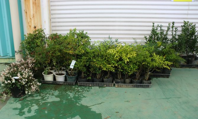 ワイヤープランツ、玉竜、アセビ、レモン、キンカン、アオマサキ、コンフューサ、南天(赤)(白)、初雪カズラ、アーモンド、オリーブ ソヨゴ、玉伊吹、ギボシ、ショウジョウノムラ、シラカシ、フェイジョアアポロ、常緑ヤマボウシ月光
